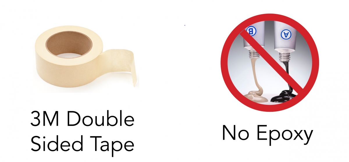 The sensor should be secured to one of the load bearing surfaces. Double-sided tape is a typical solution. Note that Tekscan can provide a “peel-and-stick” backing on custom sensors. Holes can also be designed into the sensor for screw/clamp-type mounting. AVOID hard-setting adhesives or epoxies which will disrupt the way force is transmitted to the sensing area.