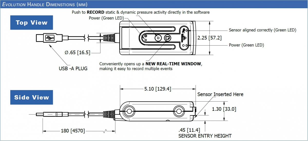 Used for standard applications, this system is lightweight and versatile. The Evolution™ scanning electronics consist of a handle that connects to a sensor and to the USB port of a PC. Multiple handles may be used simultaneously. Indicators on the handle show system status and allow some control of data collection.