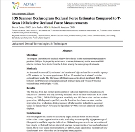 In Occlusogram Occlusal Force Estimates Compared to T-Scan 10 Relative Occlusal Force Measurements, the researchers sought to compare the estimated occlusal relative force levels in the maximum intercuspation position (MIP) as displayed" by an intraoral scanner (Primescan) to the measured MIP relative occlusal force levels from the T-Scan among the same group of subjects".