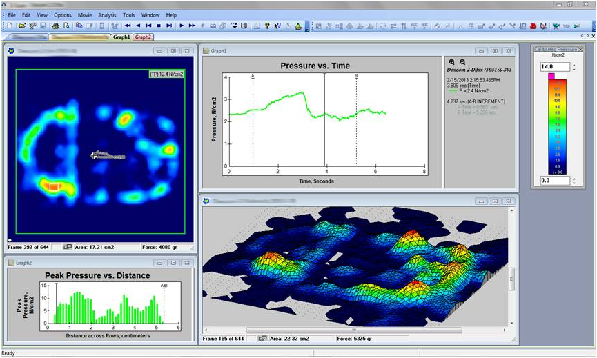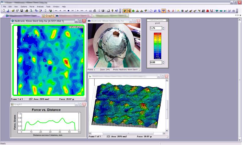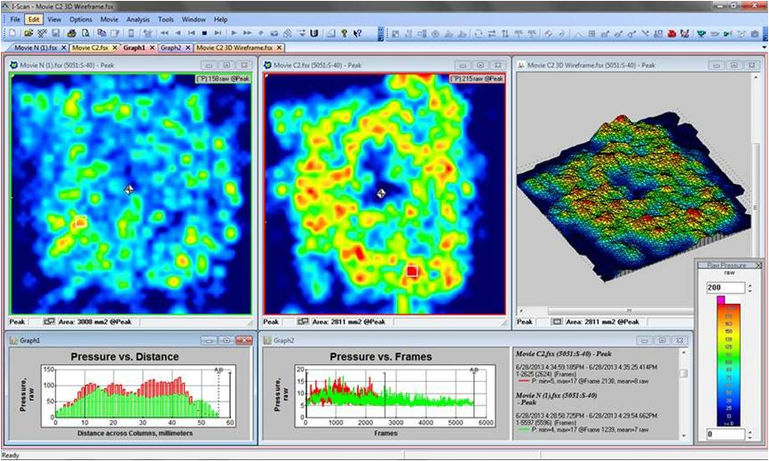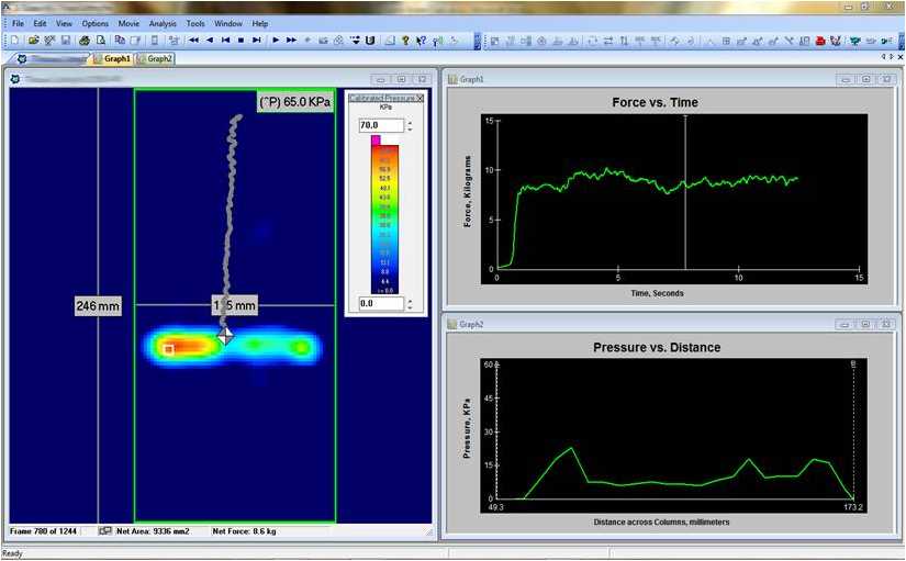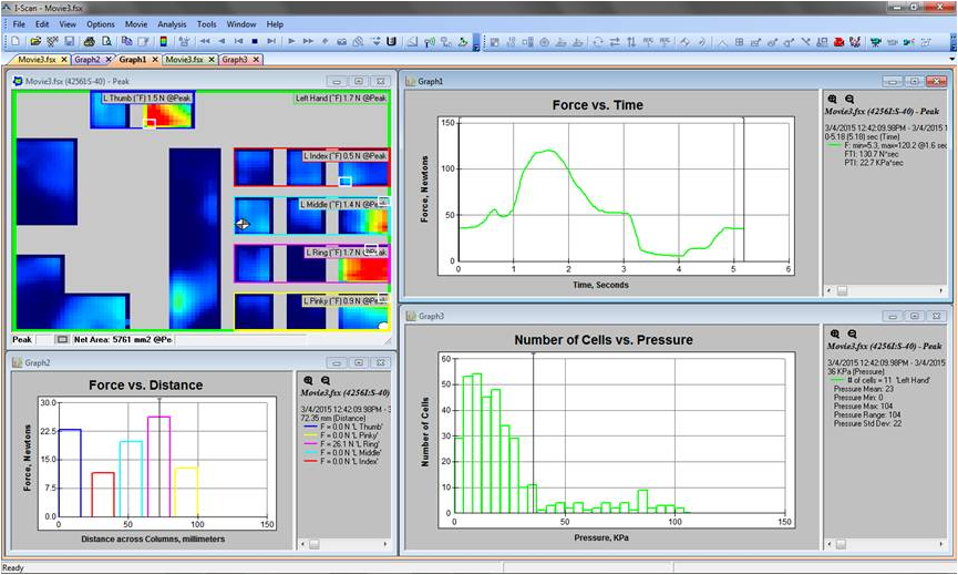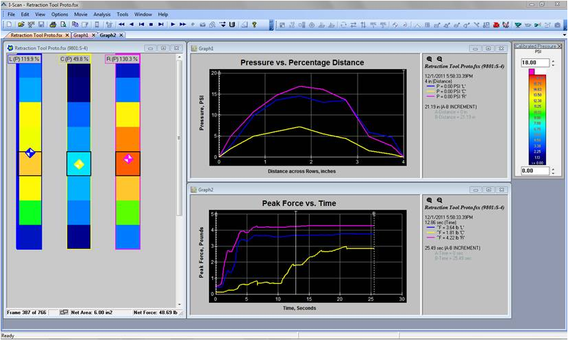 I-Scan’s comprehensive software displays pressure data in real time with the ability to record, save, and play back recording files (.fsx), or export as an ASCII text file (.csv) for use with other programs.