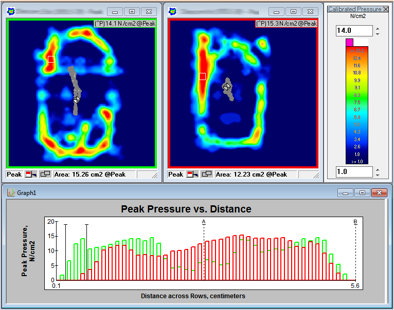 - Display peak pressures & center of force