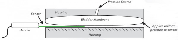 Equilibration Device Diagram Over time and through repeated loading, individual force sensing elements will eventually start to vary somewhat in sensitivity. The equilibrator applies a uniform pressure across the face of the sensor, allowing the software to eaily see and quantify these variations. A digital compensation factor is automatically created and applied to each individual sensing element. This normalizes all of the sensing elements on the sheet, improving the accuracy and extending the lifespan of the sensor.